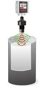 Der Sensor wird über den Vorlagebehälter montiert und misst berührungslos nach dem Ultraschallmessprinzip die Füllhöhe.