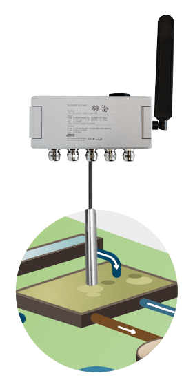 Berührungslose Füllstand- und Volumenmessung oder Durchflussmessung in Kläranlagen: Der Sensor wird über den Vorlagebehälter montiert und misst berührungslos nach dem Ultraschallmessprinzip die Füllhöhe oder per Radar.